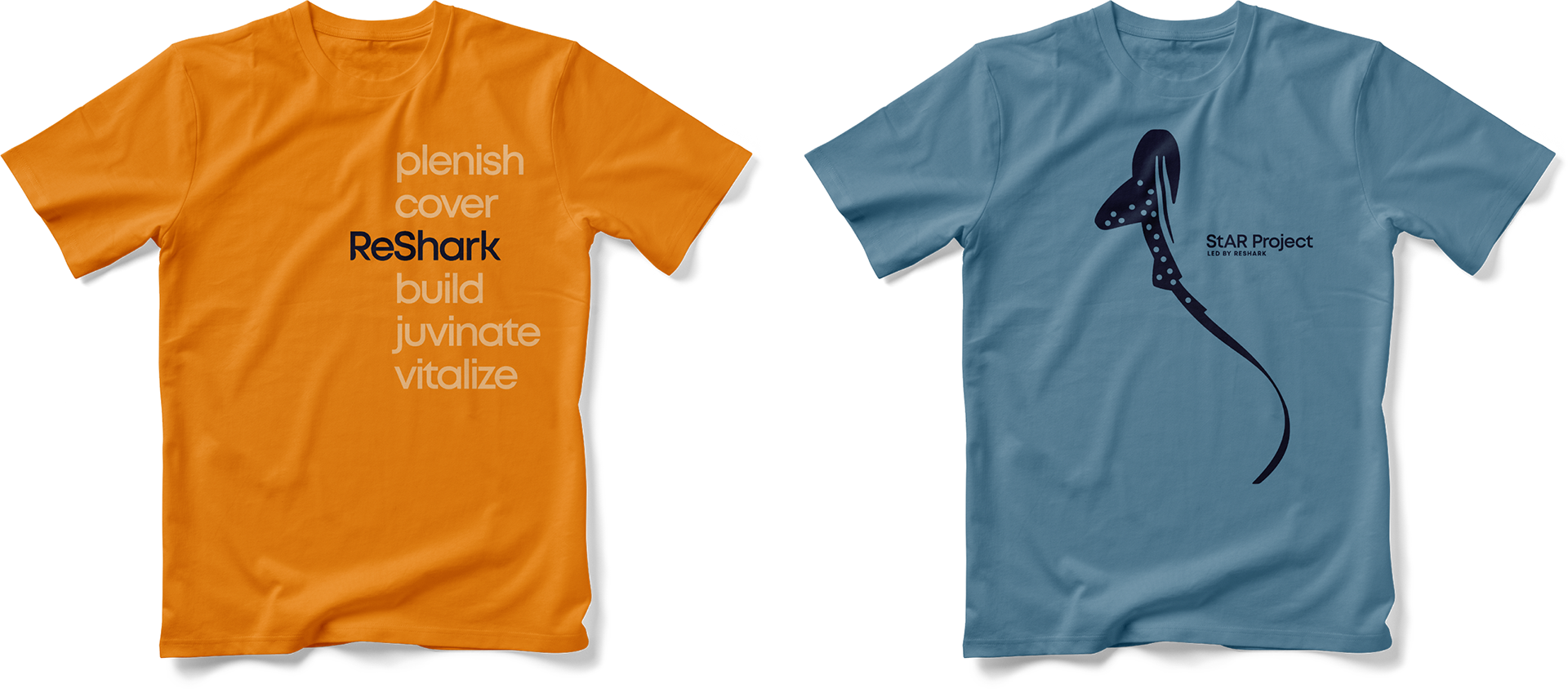 ReShark is an international collective of over 90 conservation organizations, aquariums, government agencies, and more, dedicated to recovering threatened sharks and rays worldwide by re-establishing healthy, genetically diverse, and self-sustaining populations. The identity cleverly inserts two shark dorsal fins in the ”R” and ”k” that bookend the name and uses them more overtly in the secondary mark.