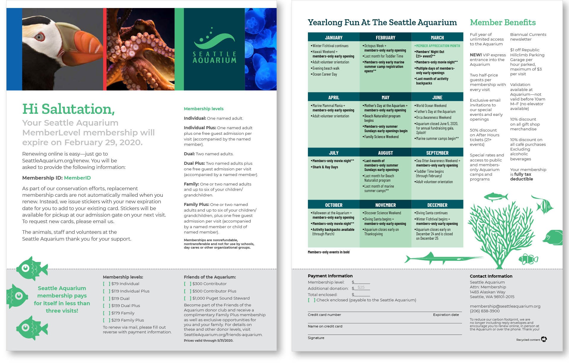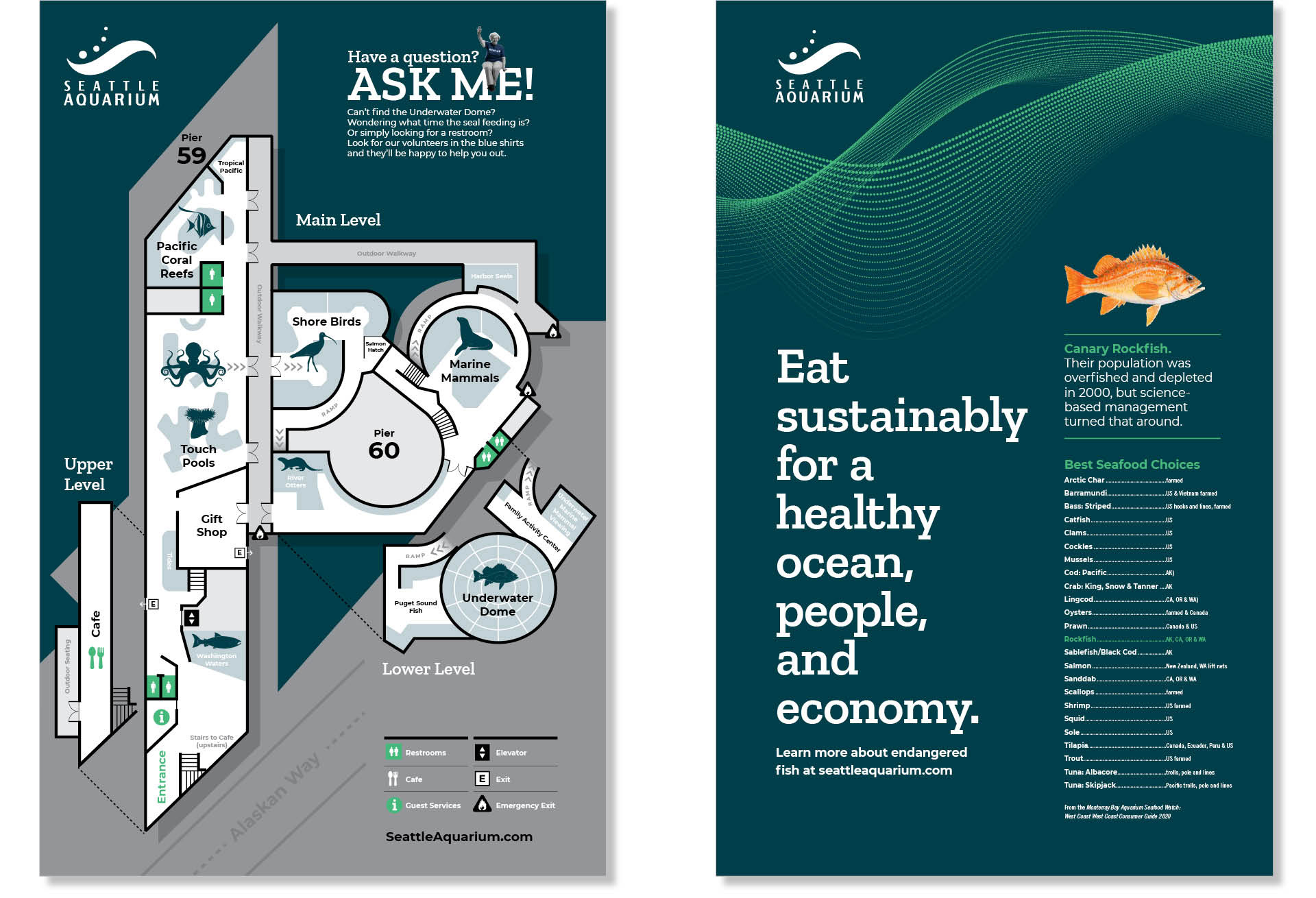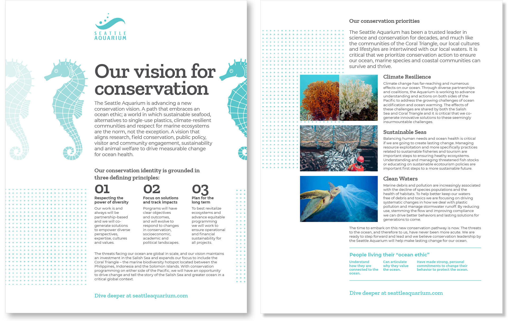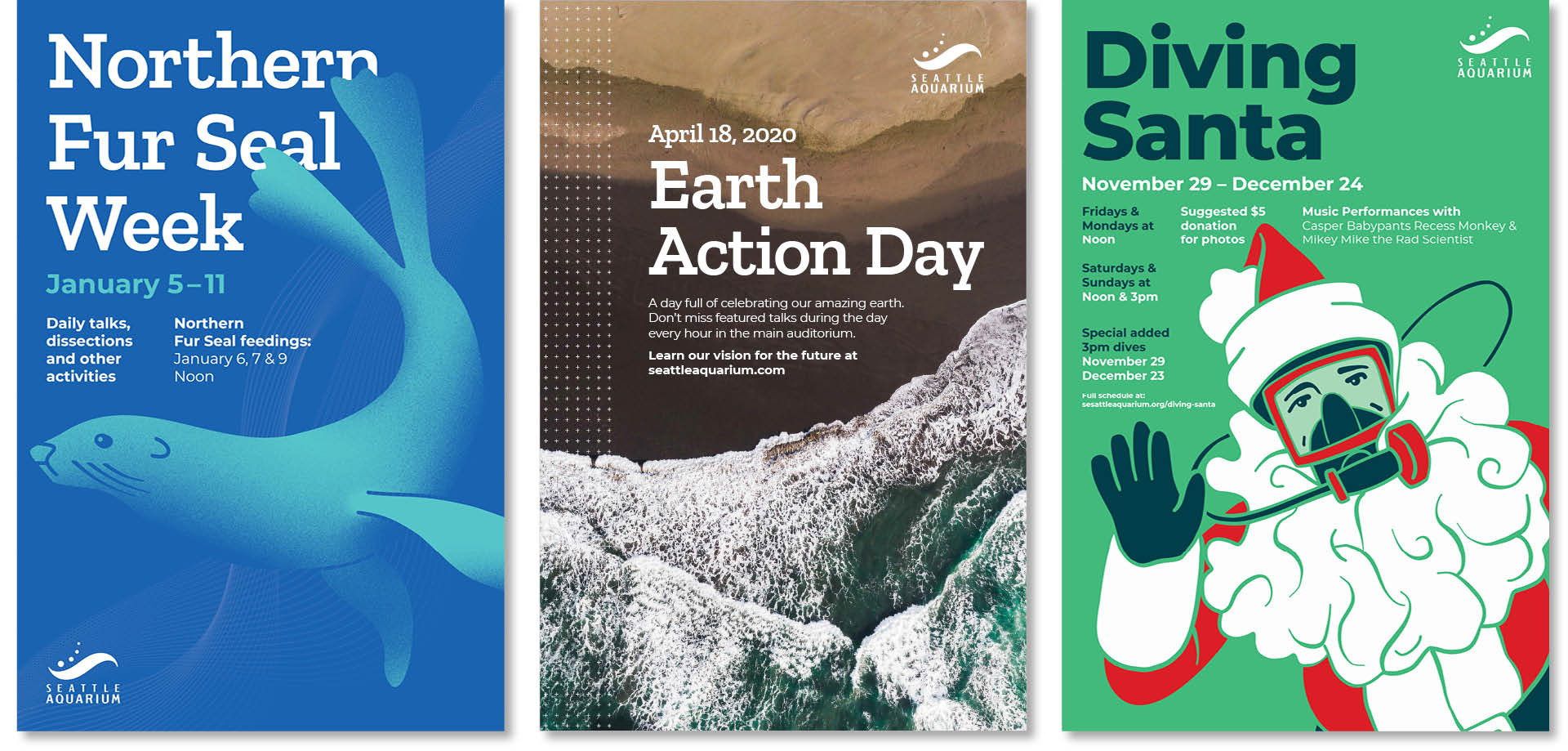 Seattle's marquee waterfront landmark was finding that its brand needed realignment. To shore up inconsistencies and provide guidance for partners and vendors, the Aquarium tasked AWD with creating a new look and feel. The new aesthetic sets the standard for materials moving forward and is the basis for new Brand Guidelines that steer future marketing materials from signage to social media.